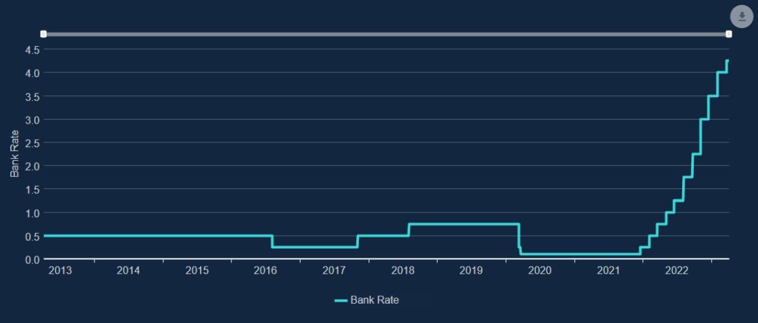 Inflation is heavily related to interest rates. The Bank of England (BoE) may alter the base rate up or down to encourage or discourage spending. Since 2007, the base rate has been very low. However, since December 2021, the base rate has increased well over 4% to 4.25%. This is the first time it’s been as high since October 2008 to combat the financial crisis.